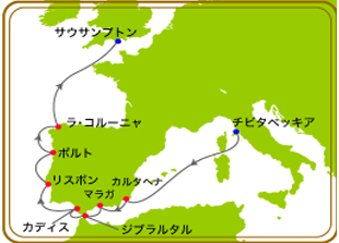 - ローマからサウサンプトンまで、スペイン・ポルトガルを中心に巡る大航海。